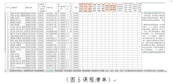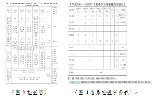 课程教学资料、毕业设计(论文)、实习、实验与课程设计质量专项检查工作安排表》(图3)、各系各模块承担的本科教学任务情况表(图4)及课程清单(图5)。各系及时布置任课教师自查(图6),学院按系按模块组织检查小组进行检查,在检查过程发现问题及时反馈给相关老师进行整改(图7)。