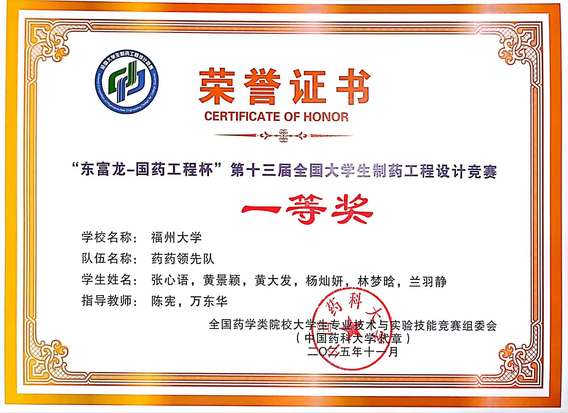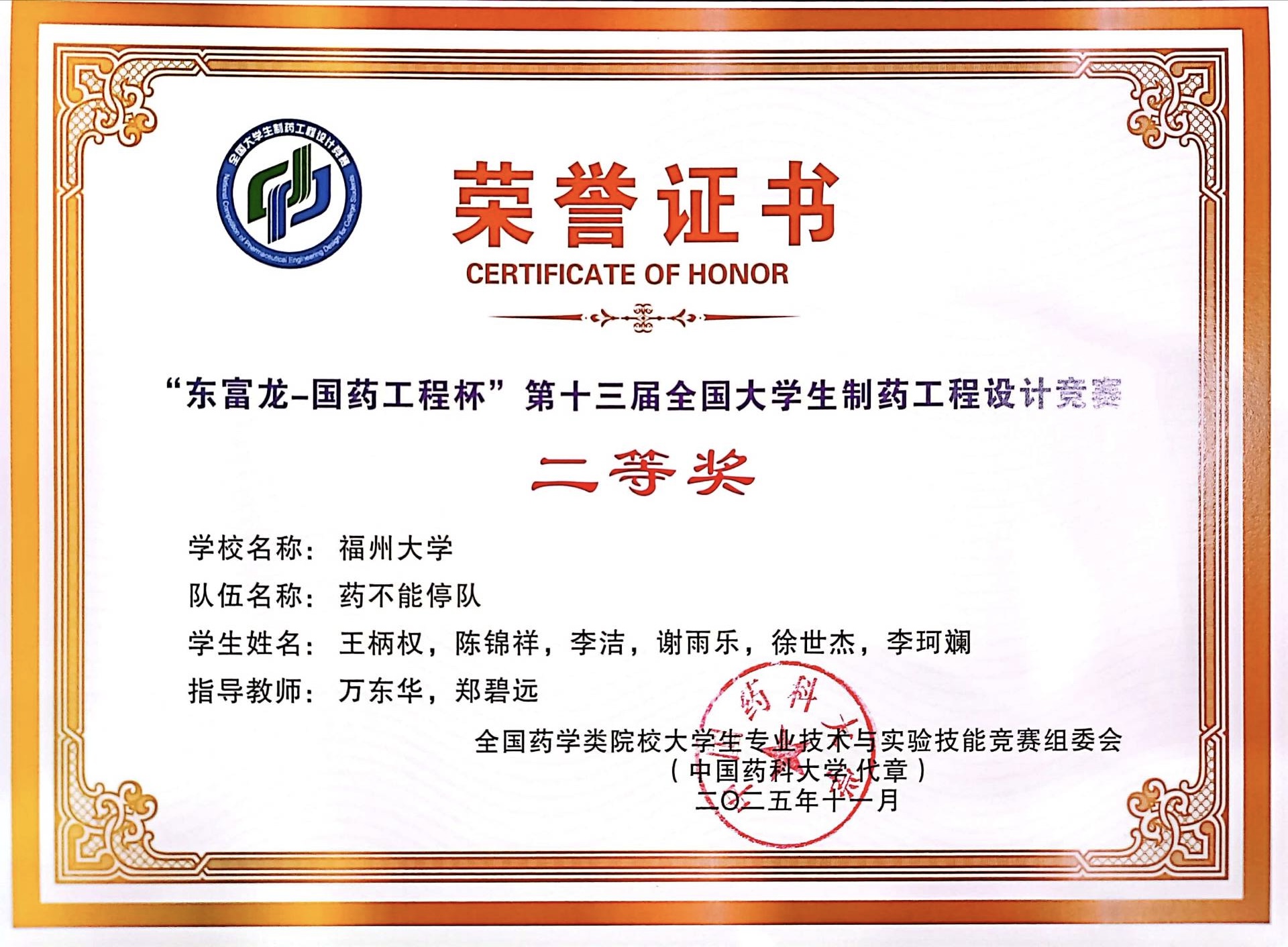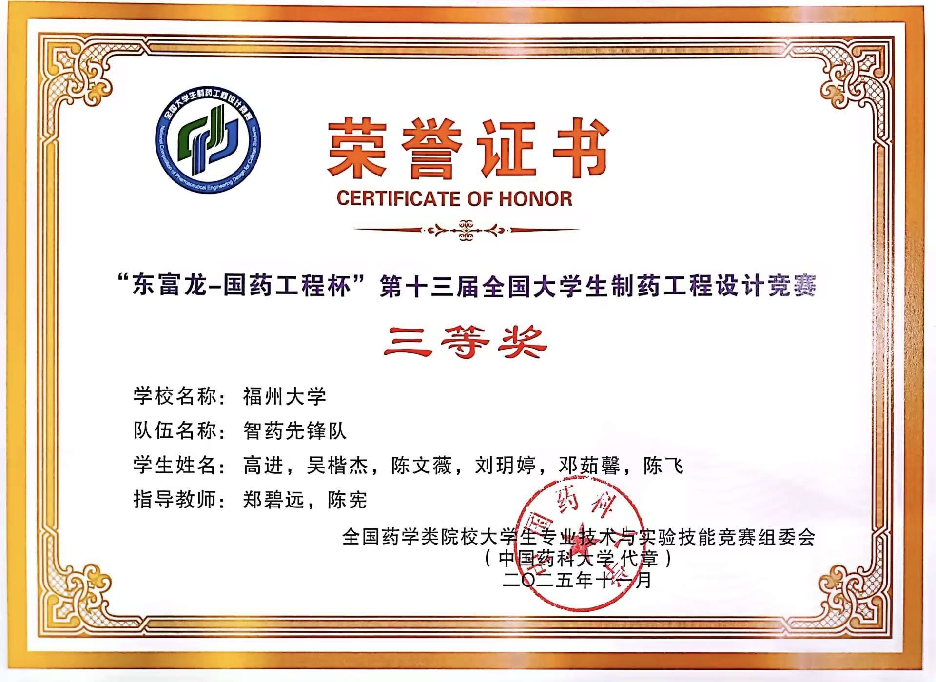多支队伍脱颖而出,“药药领先队”斩获全国一等奖,“药不能停队”、“智药先锋队”分别荣获二、三等奖,用实力在全国舞台上彰显福大学子的卓越风采!