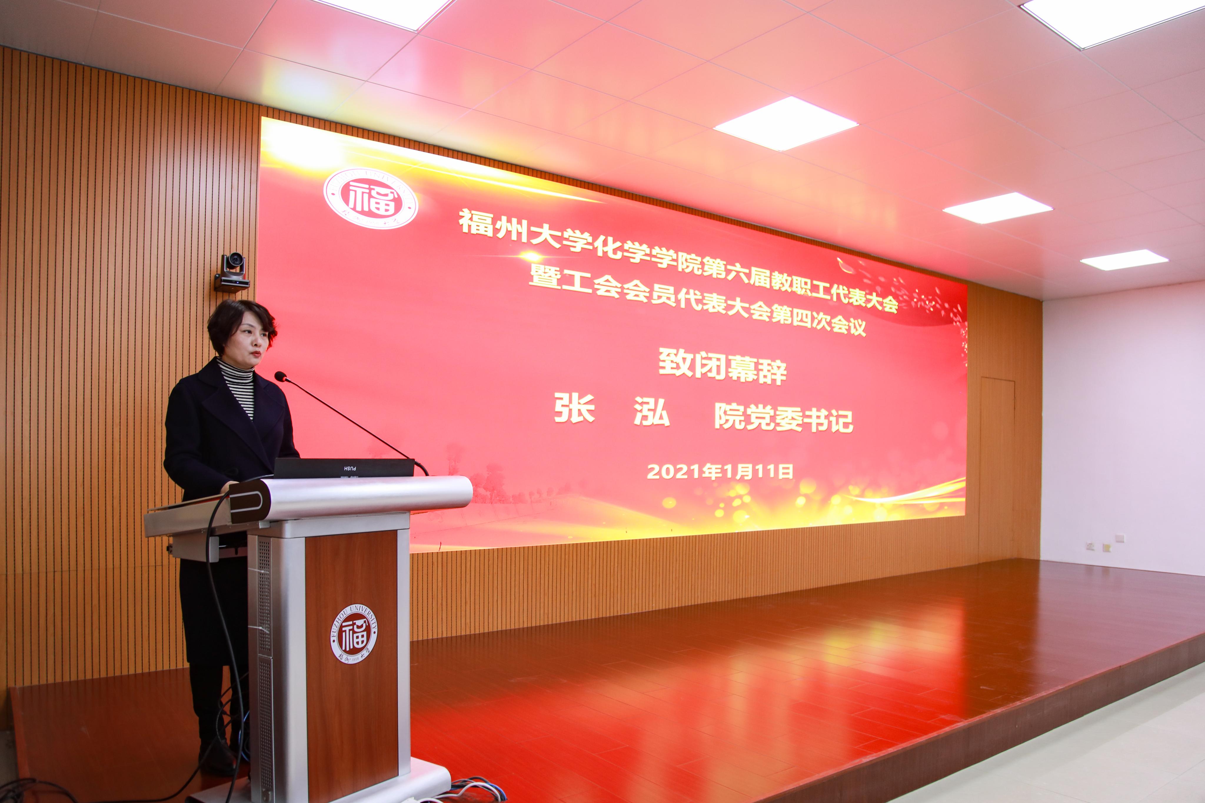 张泓书记致闭幕词。她表示,此次会议是在深入学习贯彻党的十九届六中全会精神和福建省第十一次党代会精神的背景下召开的。我们须以本次大会为契机,在学校党委的坚强领导下,继续把学习贯彻习近平新时代中国特色社会主义思想与学院学科建设、人才培养、科学研究、社会服务等各项工作结合起来,落实立德树人根本任务,牢记为党育人、为国育才使命,进一步凝聚全院教职工的集体智慧,锐意进取、扎实工作,为学校“双一流”建设贡献重要力量。