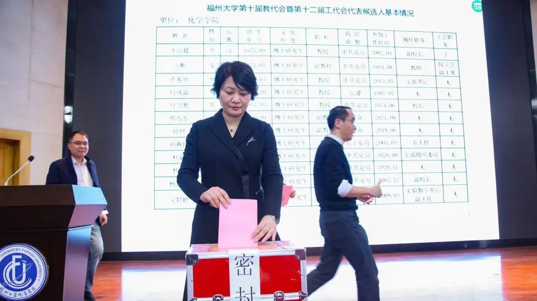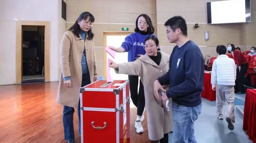 大会通过总监票人、监票人、总计票人和计票人名单,总监票人林翠英老师宣读填写注意事项,与会人员认真选举并投入庄严一票。
