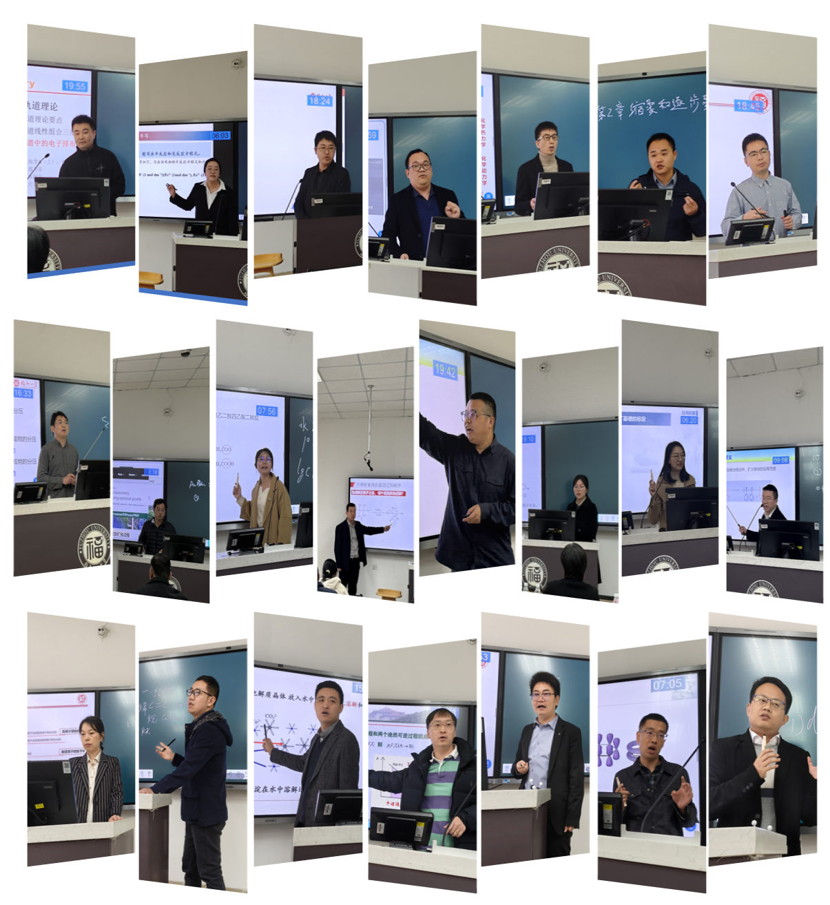 比赛现场紧张而有序,正式赛程分为三个半天,选手出场顺序通过抽签决定。参赛教师需准备一份45分钟独立且完整的教学设计,并从中选择1个20分钟教学片段,制作成PPT进行“模拟课堂”教学展示。选手们各展其能,巧妙融合学科前沿动态、人工智能技术等创新元素,通过问题引导、生活化案例、课程思政渗透等多种方式,为现场师生呈现了一场场精彩纷呈的教学片段展示。