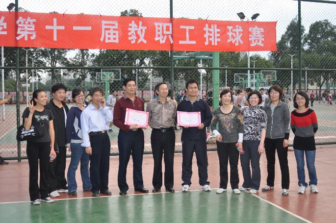 色色动漫 2011年教职工排球赛第三、四名决赛于11月30日在怡山校区排球场举行。我院教工男女队双双参赛,比赛中参赛队员发挥顽强拼搏精神,经过激烈角逐,最终击败物信学院男女队,双双夺得男女队第三名的好成绩。他们的精彩表现给大家留下了深刻印象,不断博得阵阵的掌声和欢呼声。赛后,校工会郑翔常务副主席为我院教工男女队颁奖。