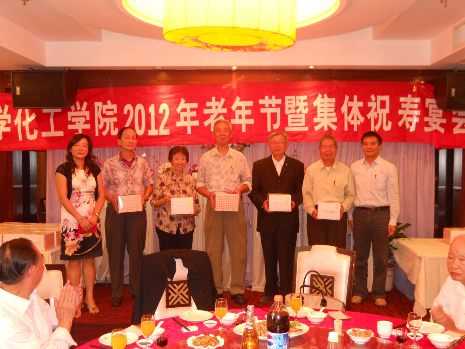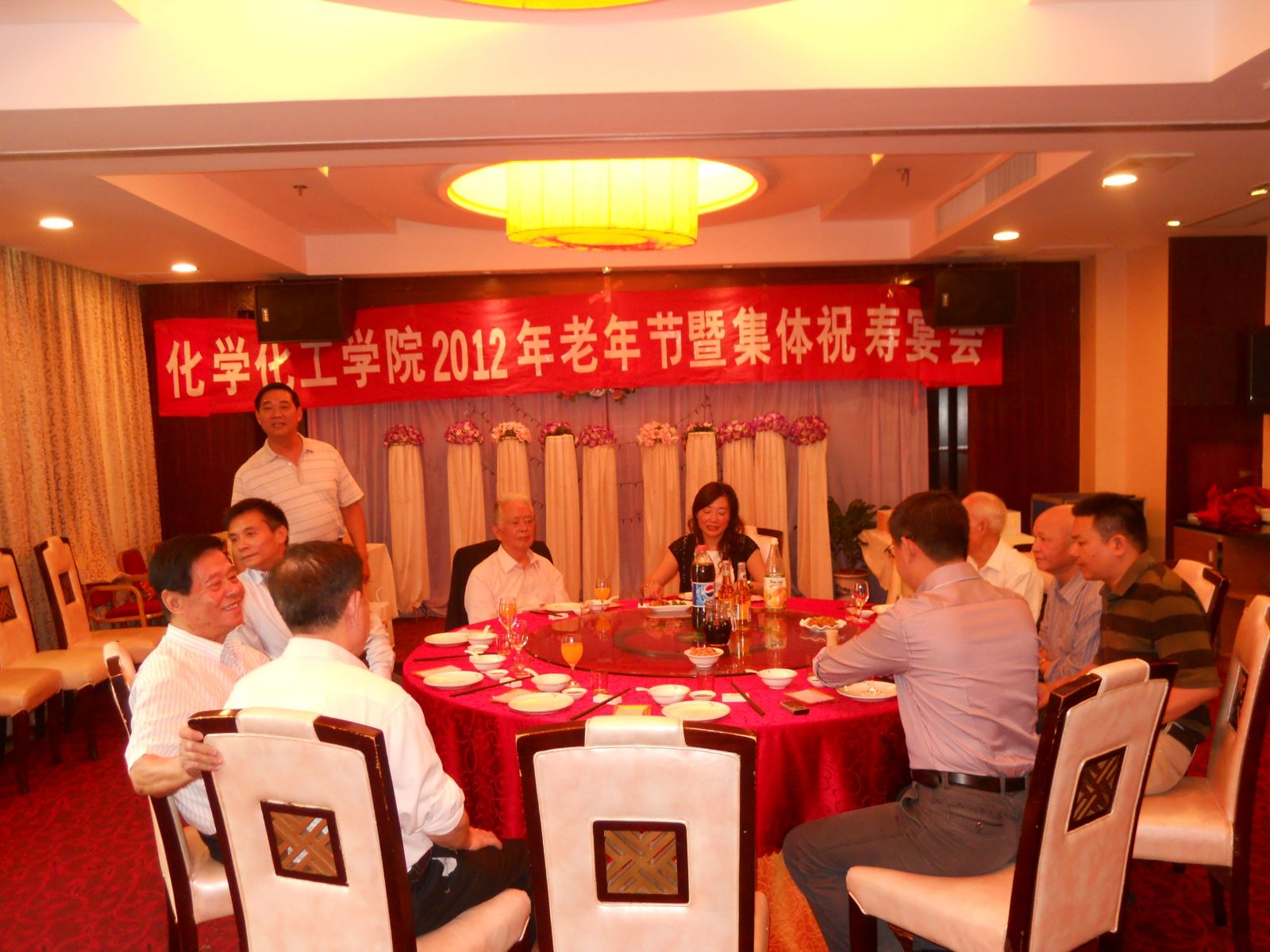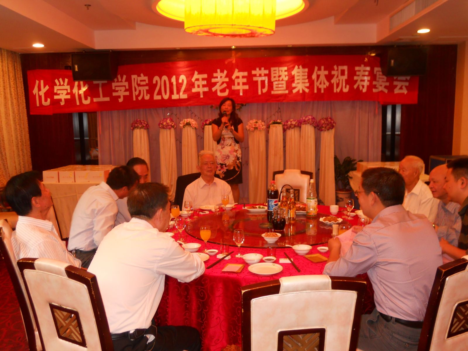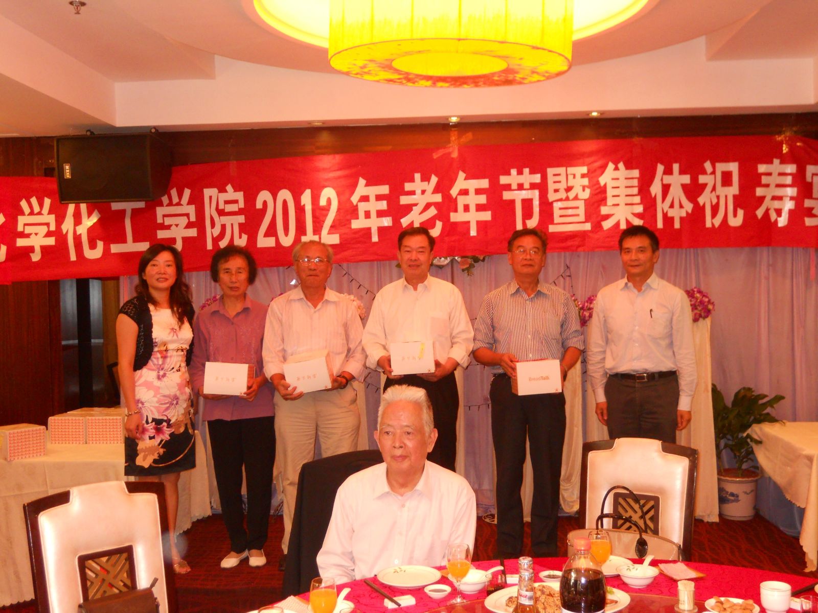 在我省第22个老年节来临之际,我院组织离退休老教师参加老年节庆祝活动。10月26日上午,近90名老教师伴随着欢快的谈话声,饶有兴致地游览了于山风景区。中午,化学化工学院庆祝2012年老年节暨集体祝寿宴会在嘉宾大酒楼隆重举行,学院党政工领导及近110名老教师参加了宴会。宴会由学院副院长、工会主席林树坤老师主持。会上,院党委倪朝霞书记致辞,他向老教师们汇报了学院一年来的工作,对老教师们对学院作出的贡献和一直以来对学院发展的关心和支持表示衷心的感谢,并给予老教师们最诚挚的祝福。接着,倪朝霞书记、陈建中常务副院长分别向70周岁、75周岁、80周岁、85周岁共26位老教师们祝寿。