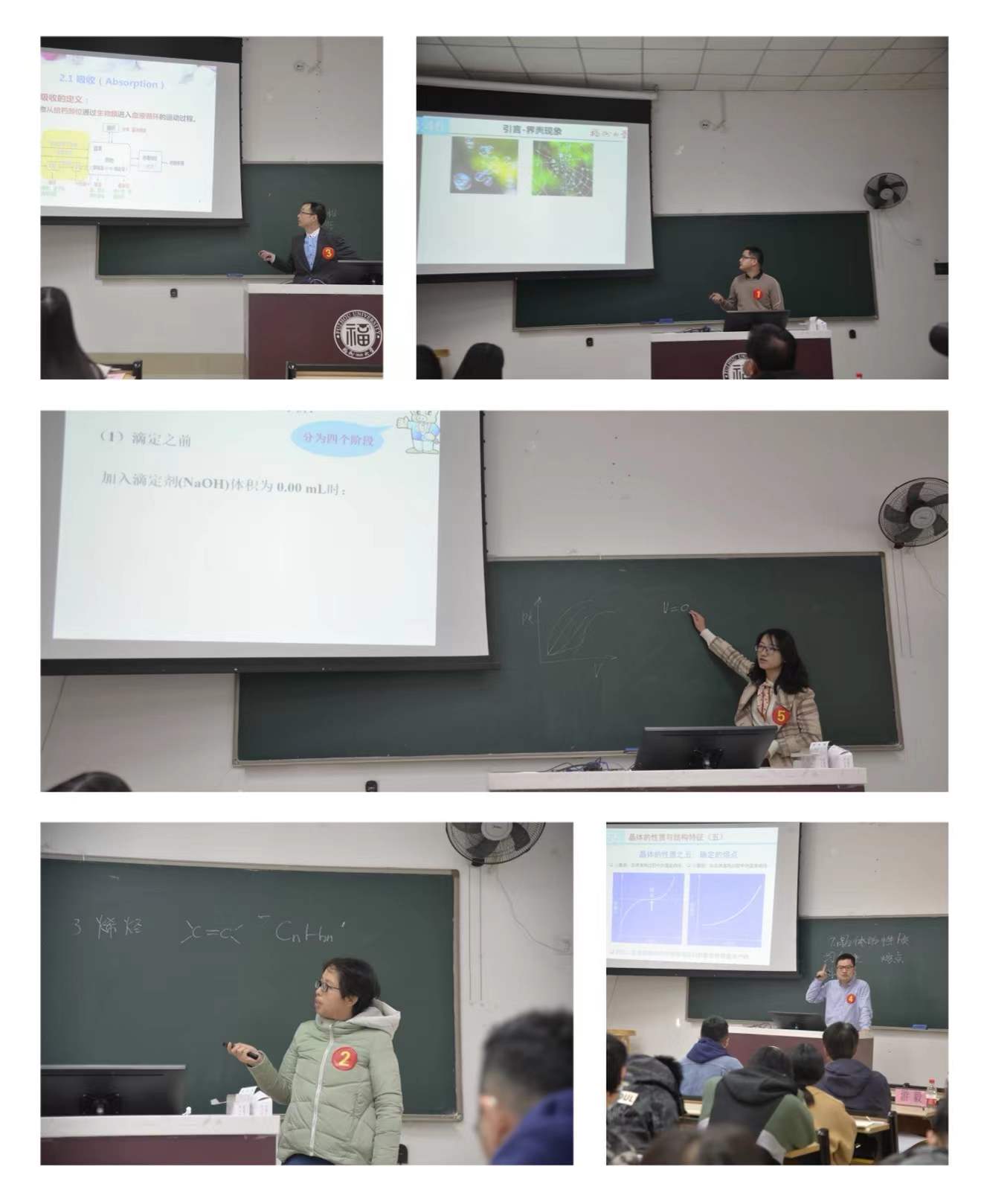 比赛现场秩序井然,按抽签顺序,吴立志、李毅、郑碧远、汤禹、陈岚岚等5位参赛教师依次展示了20分钟的精彩“一节课”,体现了我院青年教师的教学风采。竞赛评委根据参赛教师的授课教案、教学组织、教学内容、语言与教态、板书和教学手段等各方面的表现情况进行实名制打分。组长阮奇老师对每位比赛选手的表现作了精彩点评,从课程思政到案例教学,从语言神态到教具选用,阮奇老师都做了细致入微的指导,在场师生受益匪浅。经过激烈角逐,物化系的汤禹老师、有机系的李毅老师脱颖而出,分别获得一等奖和二等奖的好成绩,其余三位老师获得三等奖。