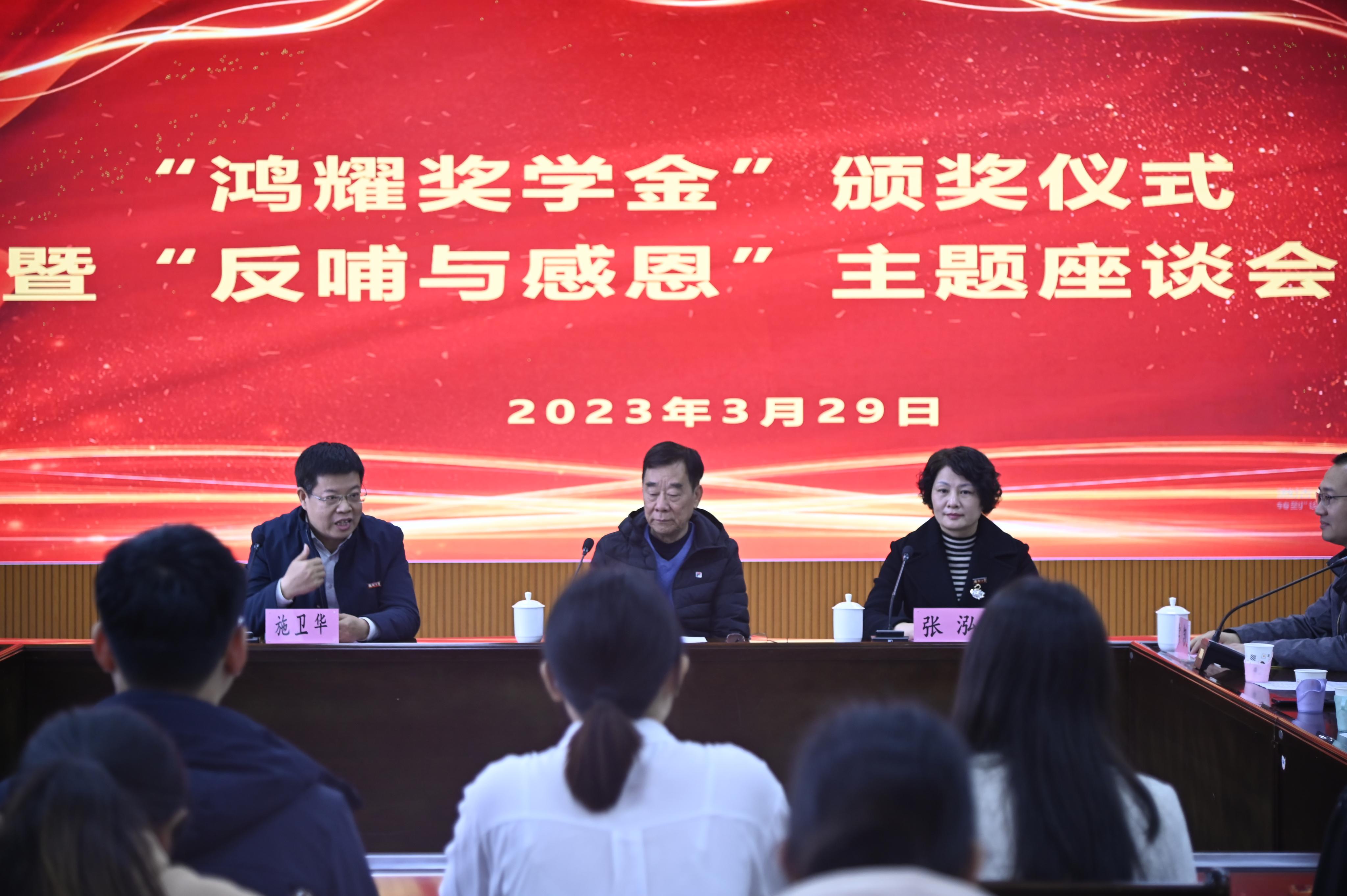 奖优助困春风化雨,立德树人桃李满枝。在这场近距离的颁奖仪式和师生座谈会中,满怀着爱才、育才、惜才的氛围,殷切的话语犹在耳畔,流连心间,给莘莘学子带来希望和温暖。十年树木,百年树人,如今时代的接力棒交到我们这一代人手中,我们不仅要“立鸿鹄志,做奋斗者”,在人生道路上勇攀高峰,担负起祖国的未来、民族的希望,还要心怀感恩,在最好的年华里励志成才,回馈母院,回报社会。