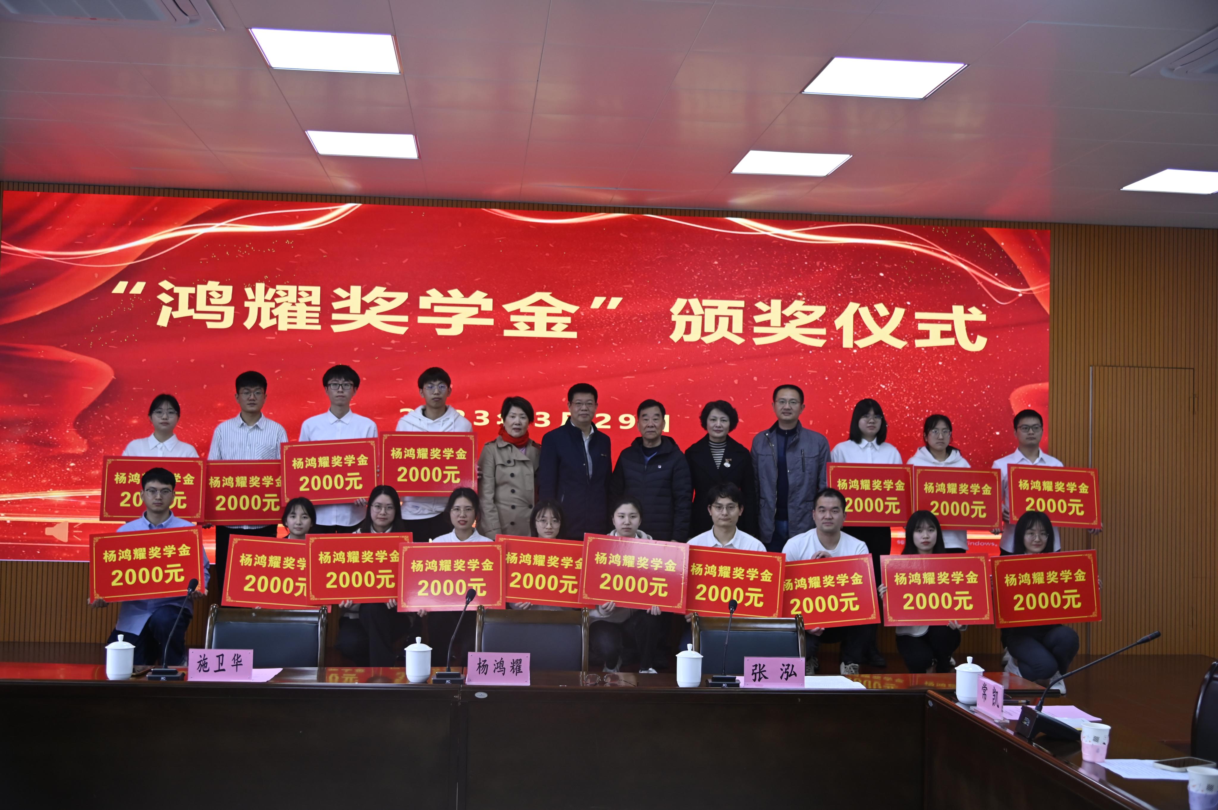 接着由杨鸿耀先生和夫人杨赛芳女士为荣获2022年“鸿耀奖学金”的学生颁发证书。杨鸿耀先生对每位获奖学生表达了赞许和鼓励,希望大家谨记时代使命,心怀感恩、努力拼搏,将来积极回馈母校,回馈社会。