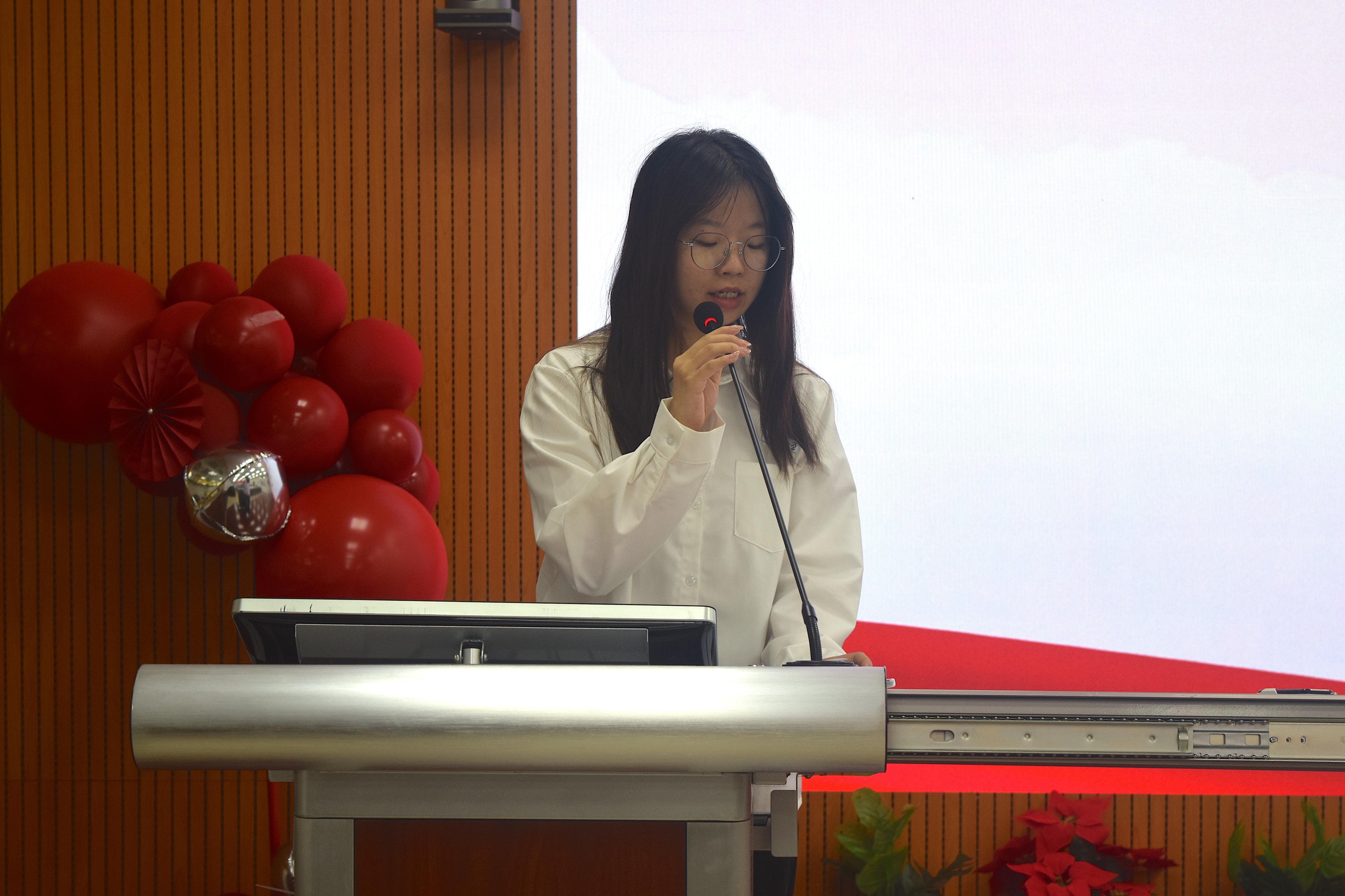学生会主席团成员黄悰奡表示作为学生骨干应当要筑牢理论根基,在学思践悟中站稳政治立场,将学习成果转化为实际行动。并指出作为嘉锡青年,不仅拥有较强的科研素养,也具有良好的文化体育素养,文体中心要积极引领同学们参与文化体育各方面活动,为同学们提供良好的文化体育平台,潜移默化地提升新时代嘉锡青年对文化、体育的认识。