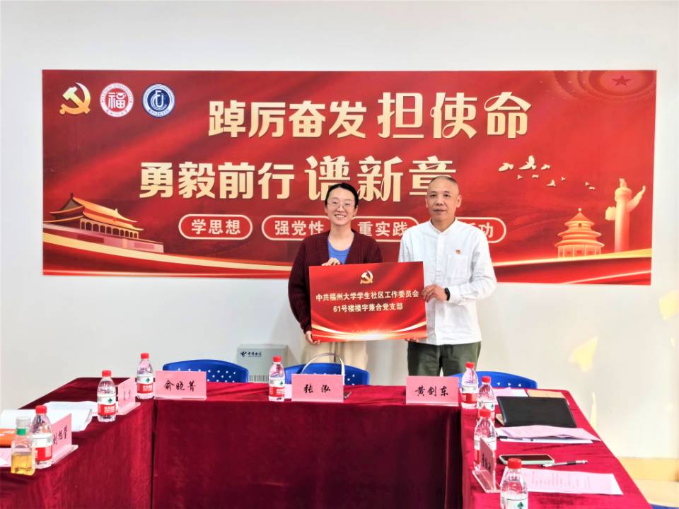接着,由担任我院学生公寓的楼宇总指导员及各楼栋的兼合党支部书记为26、58、60、61号楼楼宇兼合党支部进行授牌。
