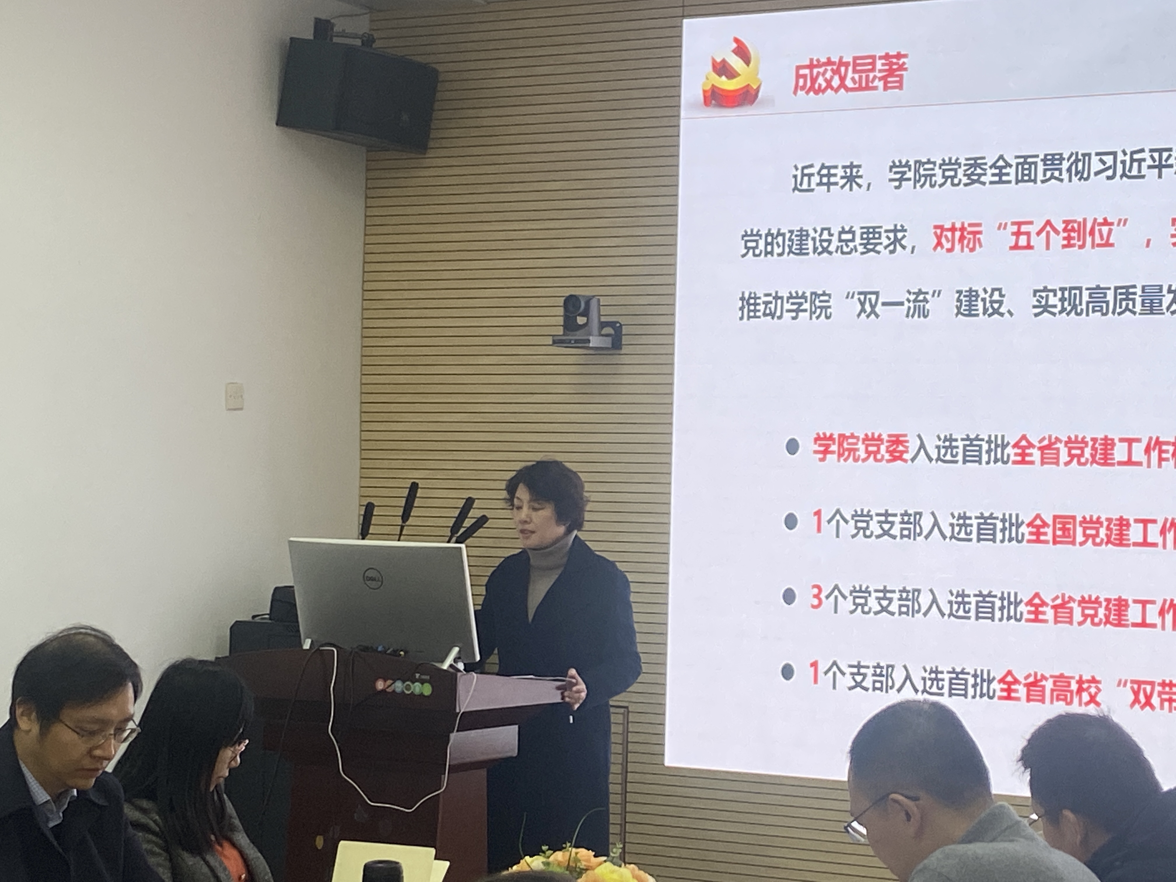 张泓书记从以一流学科建设这一目标导航,加强系所主任队伍和党支部书记两支队伍协同,通过组织运行、制度机制、监督落实三大着力点,以理论学习、基层组织建设、党风廉政建设、党建品牌引领为四大抓手,聚焦人才培养、科学研究、社会服务、文化传承、国际交流五个方面介绍我院党建工作概况与取得的成效。
