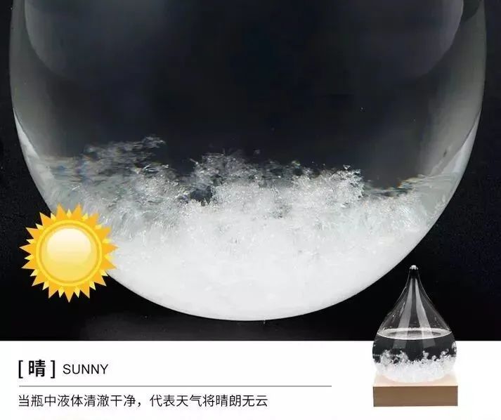 天气瓶又称风暴瓶(Storm Glass),是可以用来对天气进行一定程度预测的工具。密闭的玻璃容器中,装入数种化学物质组成的透明溶液,根据外界温度改变,瓶内会展现出不同型态的结晶,预报天气的变化。