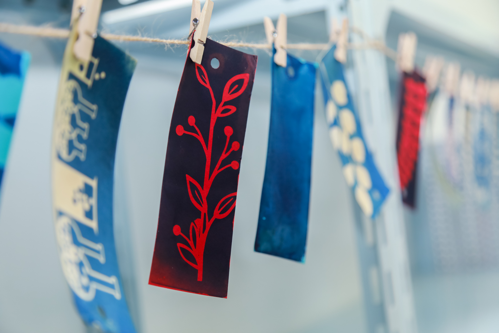 于蓝白之间,化学和摄影的跨界表演。同学们在老师们的指导下迫不及待地开始实验,小心翼翼地将感光液均匀地涂抹在底板上。避光晾干后,他们发挥想象力和创造力,将化学反应的理学之美与图像设计的艺术之美相结合,利用各式各样的“负片”制作出独属于自己的“蓝精灵”。随着作品在清洗后显现出漂亮的普鲁士蓝色,小朋友们为神奇的化学变化惊叹不已,欢声笑语中充满了对科学的向往与期待。