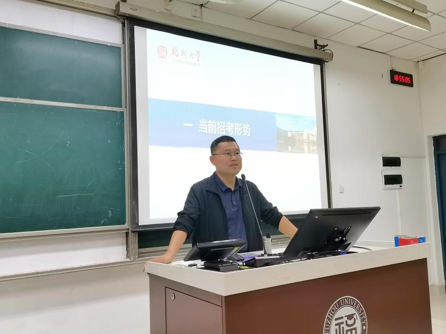 研究生招生办公室主任姜云飞老师开展硕士研究生招考形势与备考规划讲座,本次讲座由辅导员陈日懿老师主持。