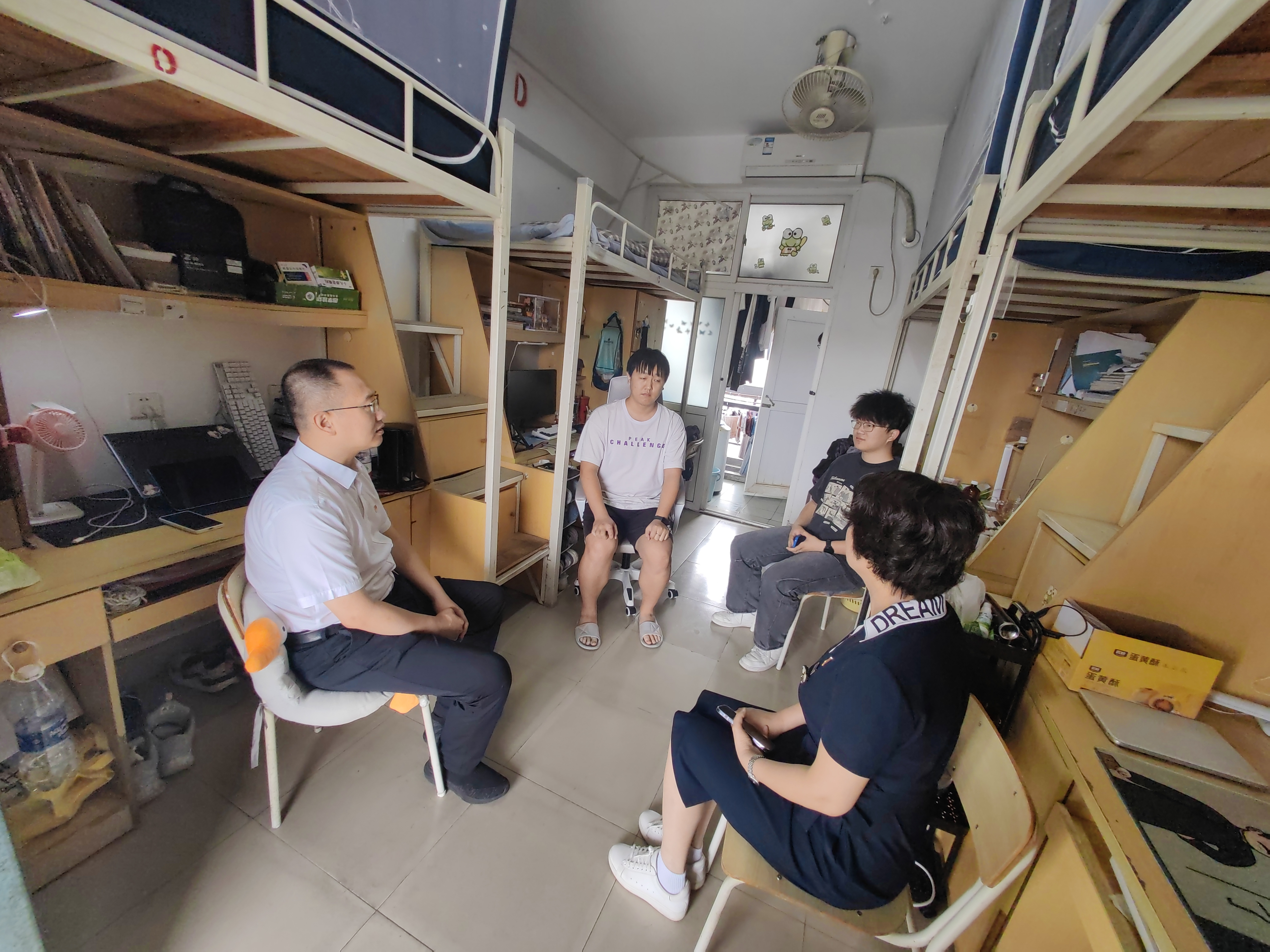 最后,张泓书记、常凯副书记走访26号楼学生宿舍,与学生们近距离开展座谈,倾听学生心声,了解关心嘉锡青年们的宿舍生活与学习情况,提醒同学们要以党纪学习教育为契机,遵守校纪、严格考纪,安排好学习时间,认真备考,营造优良校风,共创文明校园。