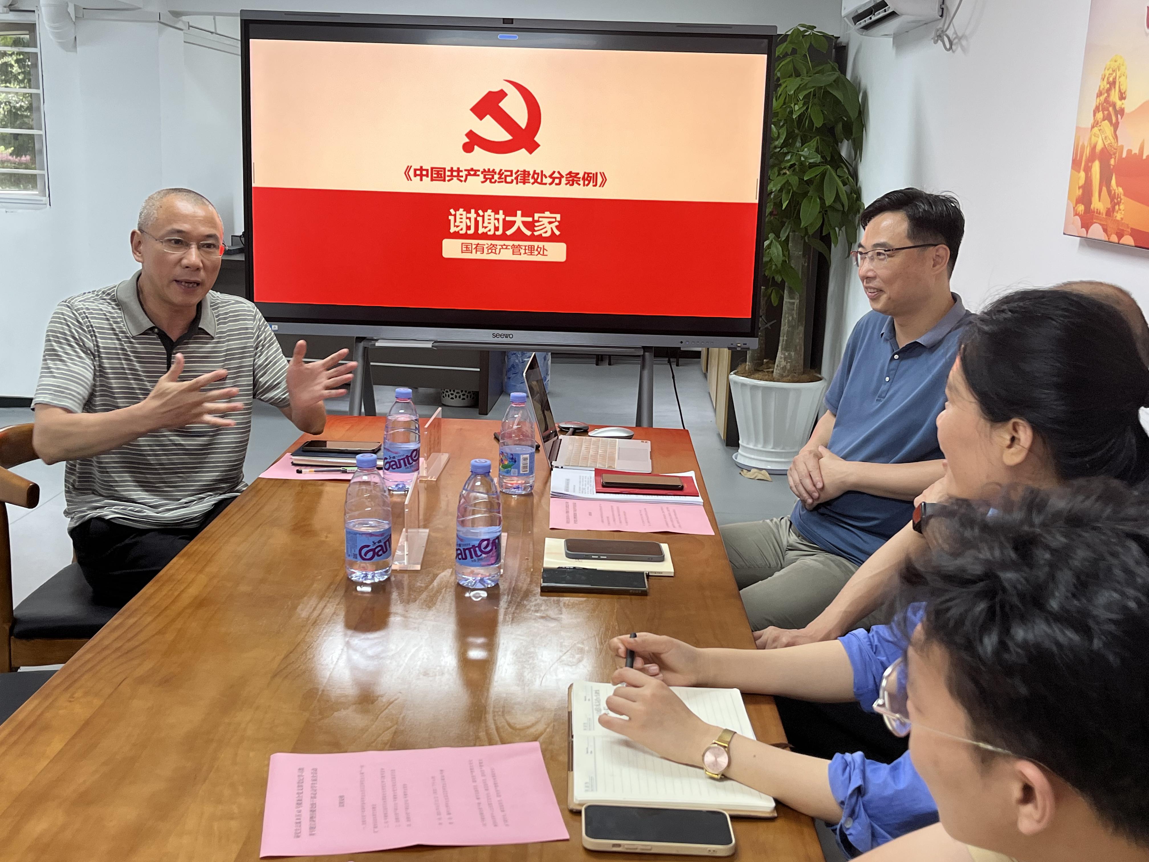 为扎实开展党纪学习教育,增强学生党员政治自觉、思想自觉、行动自觉,以党建引领提升“一站式”学生社区育人成效,6月13日下午,研究生公寓B区61号楼兼合党支部于“一站式”健身活动共享空间党团活动室开展党纪学习教育专题宣讲暨挂联处级干部走访学生宿舍活动。61号楼楼宇总指导员、国有资产管理处处长兼招标采购中心主任雷石宝处长,楼层指导员、国有资产管理处余飞副处长,楼层指导员、国有资产管理处林勇副处长,色色动漫