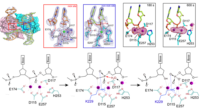 时间分辨晶体学技术揭示MOC1在Mn2+离子催化下切割HJ的工作机制(摘自Zhang et al. Nat. Commun.,2024)