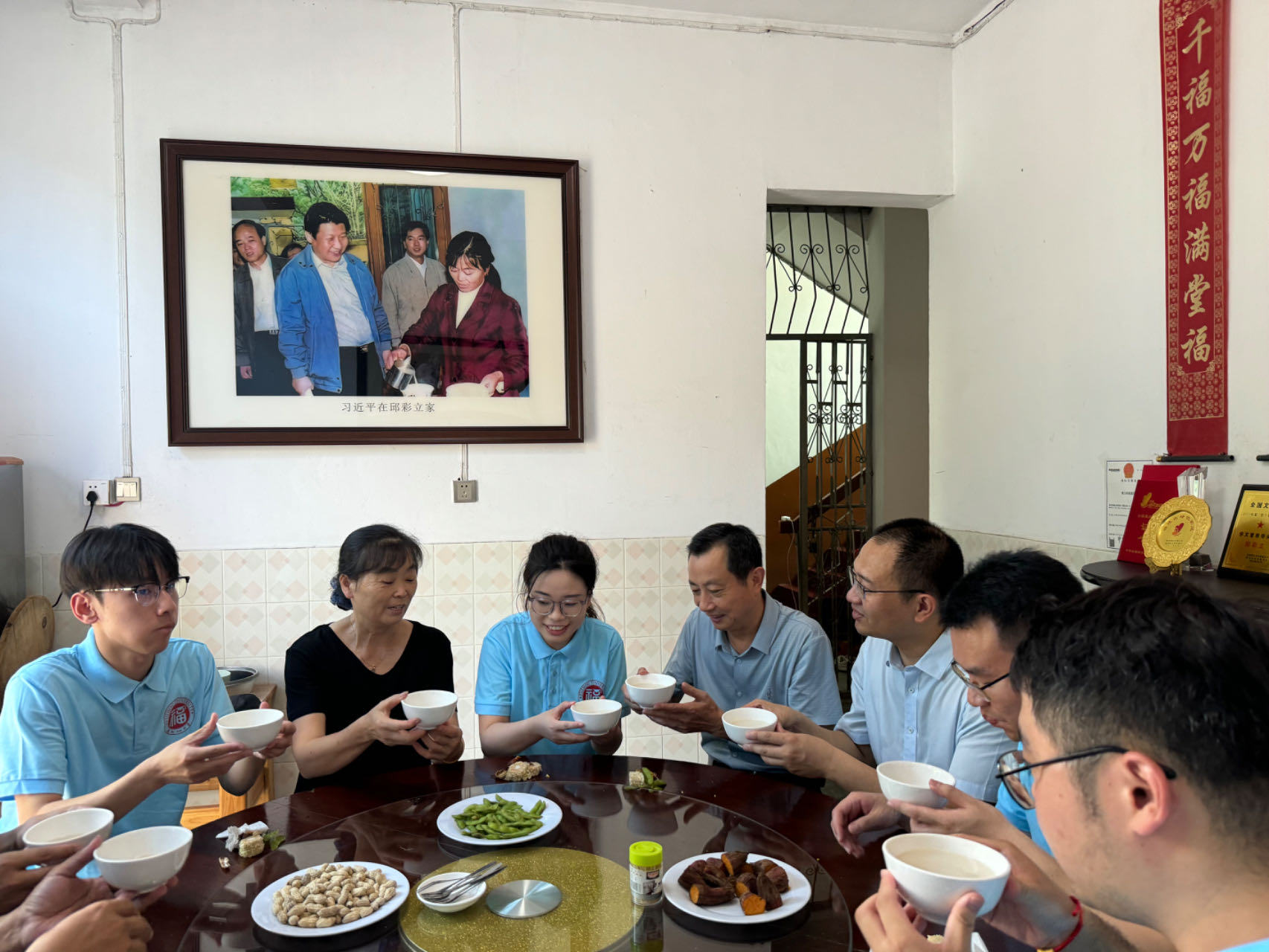 接着,实践队一行来到常口村村民邱彩立大姐家,了解将乐擂茶文化,亲身体验擂茶制作过程。擂茶不仅仅是一种具有悠久历史和深厚文化底蕴的古老饮茶方式,更是一种文化的体现和情感的载体。凡遇结婚、添丁、乔迁、做寿等喜事,喝擂茶是这里必不可少的待客礼节。队员们在品尝擂茶和聆听了“一碗擂茶映初心”的感人故事的同时对当地风土人情有了更深切的感悟。