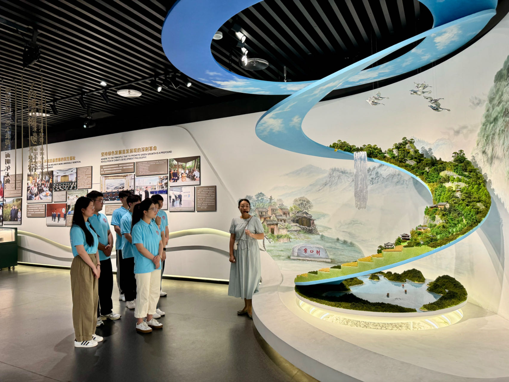 常口村是习近平生态文明思想的重要孕育地和实践地。在常口村的“两山学堂”生态展馆,通过讲解员详细生动的介绍,队员们领会常口村牢记习近平总书记在常口村考察调研时提出的“青山绿水是无价之宝”“山区要画好‘山水画’,做好山水田文章”等重要论述,了解到常口村始终牢记习总书记的嘱托,积极探索实践党建引领下的“两山”转化路径,将可持续发展理念与乡村振兴紧密结合,创新林票碳票,推进青山变现,创造卓越成效。
