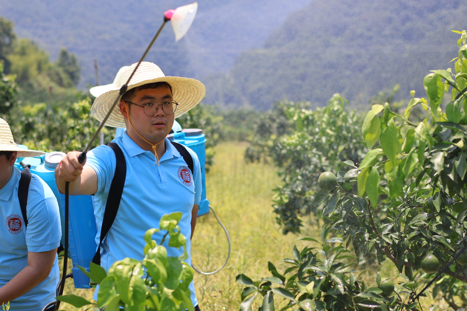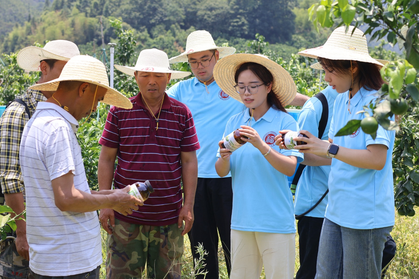 队员们走入田间地头,为果农们详细介绍如何辨别各类病虫害、如何选择合适方法进行防治脐橙病害,并耐心细致地回答果农们提出的问题。炎炎烈日下,实践队员们将专业知识和生产实际相融合,潜下心,躬下身,将科研论文写在在田间地头,淬炼成长,提升服务“三农”能力水平。