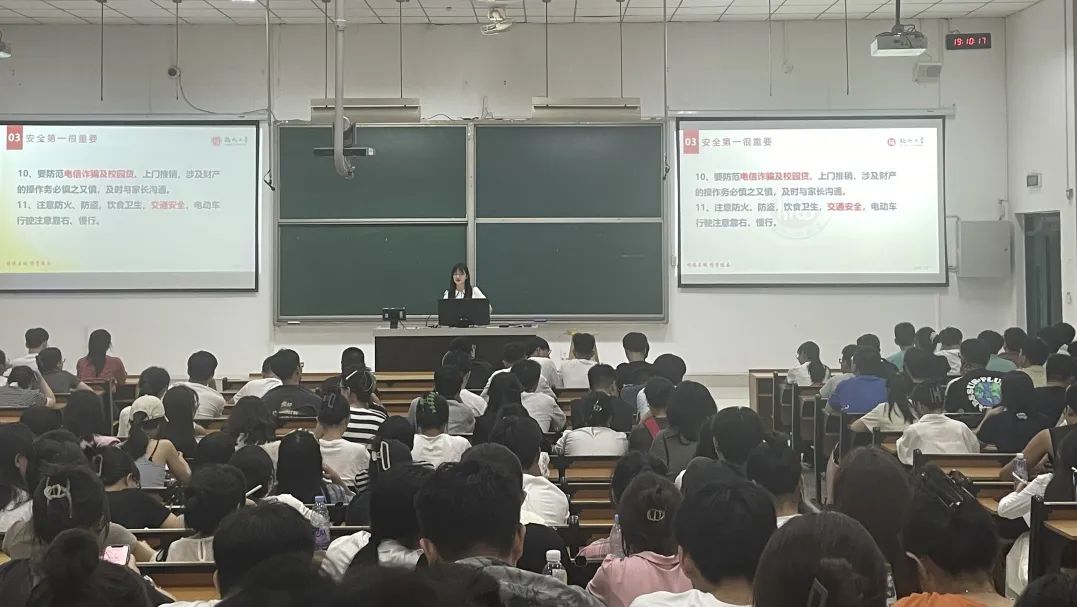 “安全第一很重要”,两位老师进一步提醒大家,务必警惕电信诈骗和校园贷,确保财产安全,同时应高度重视交通安全、实验室安全、宿舍安全等问题,与导师及师兄师姐保持良好沟通互动,不断锻炼自身本领,提升自身素养,用奋斗谱写昂扬向上的青春赞歌。