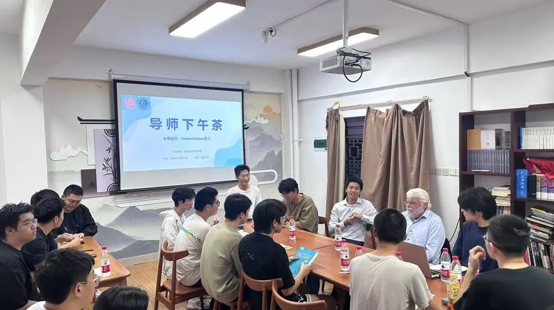 学业发展部主办的导师下午茶活动在“一站式”学生社区嘉锡书院成功举行。德国科学院院士、欧洲科学院院士、德国明斯特大学的Gerhard Erker教授和学院国家级青年人才、院长助理叶克印教授做客本期导师下午茶,辅导员陈日懿老师和学院嘉锡化学拔尖班学生代表全程参加。