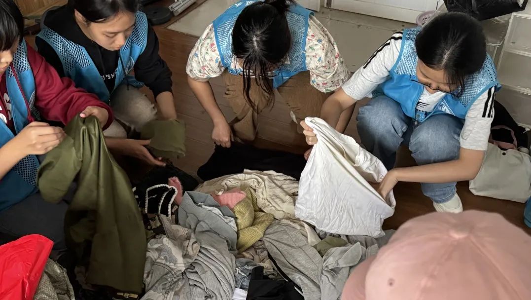 随后,志愿者们回到学生活动室,认真清点下午收到的旧衣物,细致做好分类登记,并将物品妥善打包处理。那些曾经陪伴我们走过春夏秋冬的衣物,被重新赋予了生命。