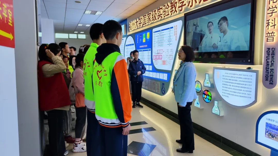 随后,魏巧华老师带领同学们进一步参观了化学科普文化墙,并在南301观看了实验中心近年来开展的一系列化学科普实验的视频,使得同学们对化学学科有了更深层次的认识。