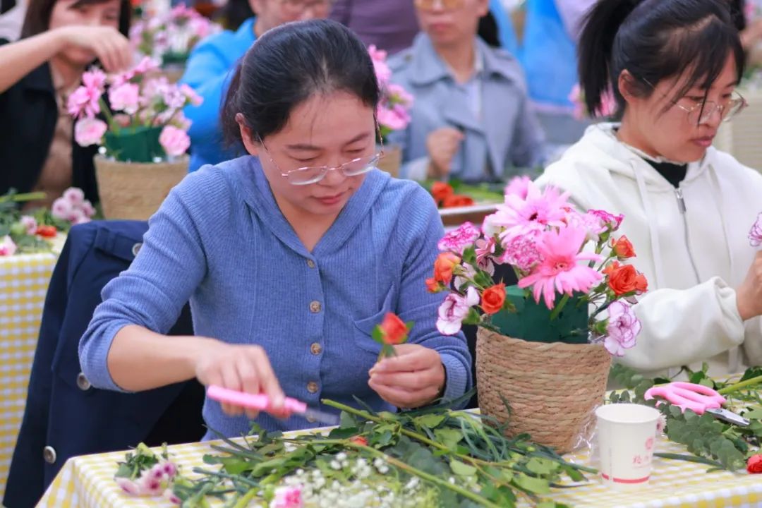 随着活动的进行,一件件绚丽缤纷,赏心悦目的花艺作品在活动现场绽放。老师们手捧着自己的得意之作,反复观赏,脸上洋溢着幸福感与成就感,相互拍照留下自己的靓丽瞬间。