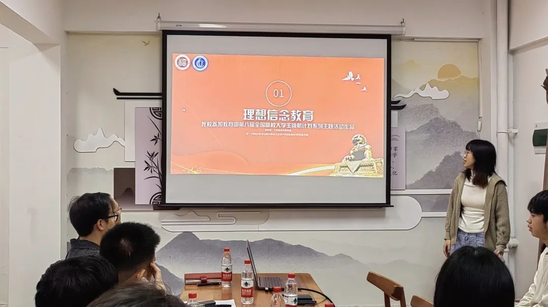 学习委员李海璐向同学们展示了我校参加教育部第八届全国高校大学生领航计划系列主题活动作品——《百年船政续星火,科技自强谱新篇》。同学们跟随着视频领略福建船政的创新之路,感悟船政精神,纷纷表示自己将践行“筚路蓝缕,守正创新”的院训,以创新精神面对未来的学习科研生活。
