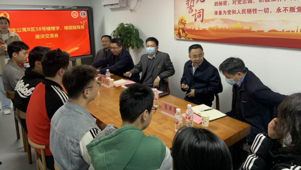 在走访宿舍中,处级领导干部面对面了解了学生的宿舍生活条件、学习情况等。黄剑东院长和曾忠毅书记尤其强调了宿舍安全的重要性,结合实例为同学们普及了公寓违规用电、电动车随意停放等安全问题的危害。