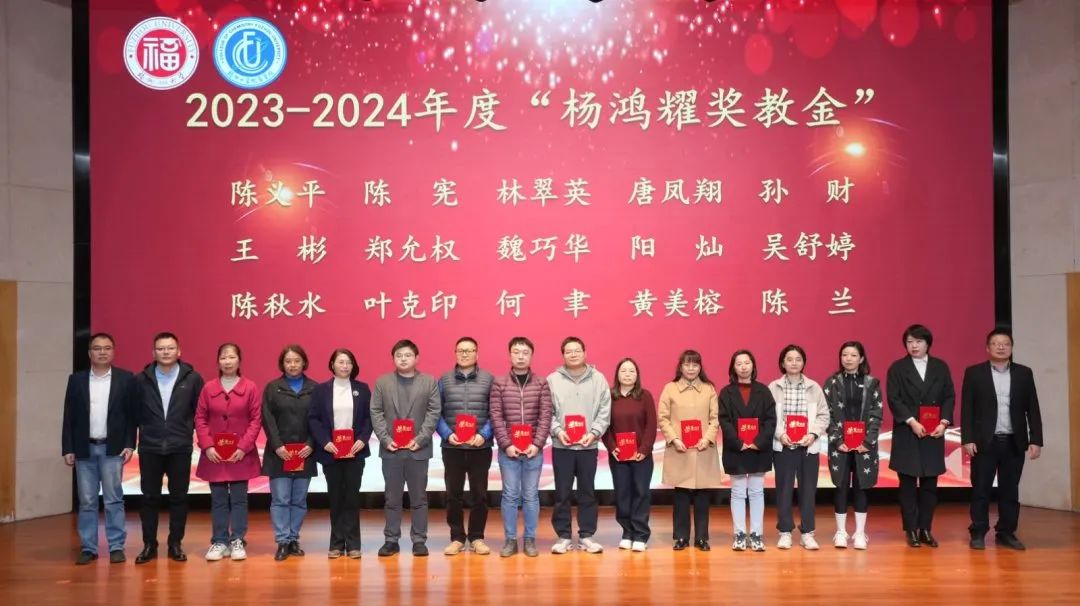 林子俺副院长、张金水副院长、谢在来副院长为2023-2024年度“杨鸿耀奖教金”获奖教师颁奖