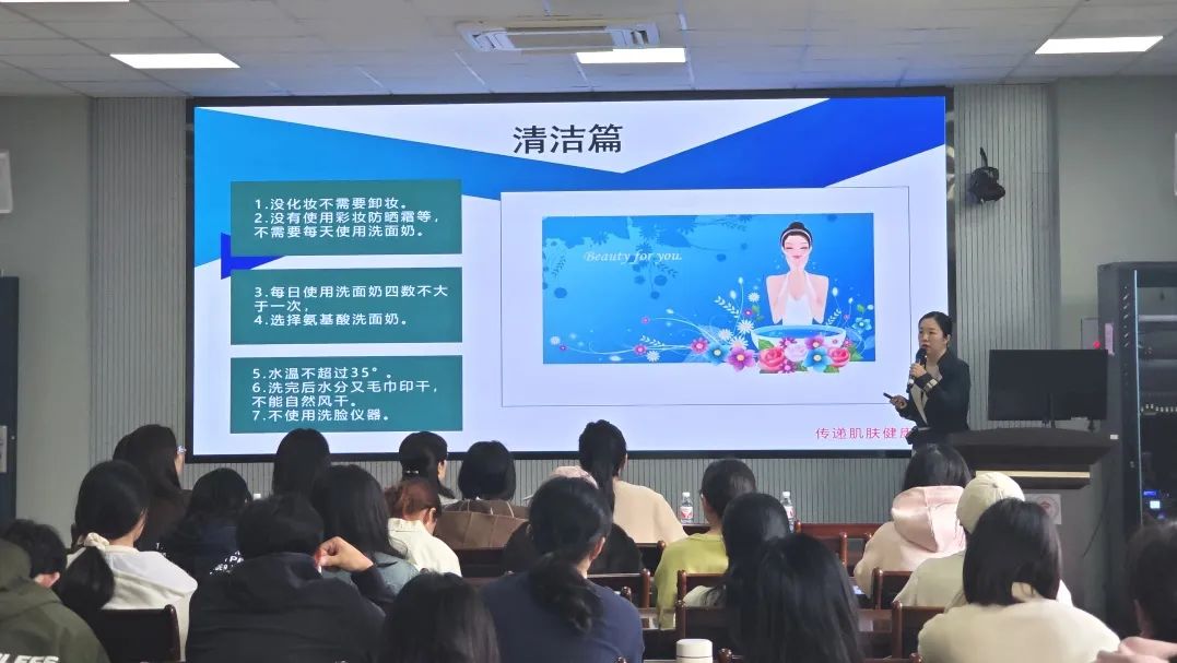 福州市第一总医院皮肤科副主任医师李睿从基础的护肤步骤切入,向同学们阐述了清洁、保湿、防晒等保护皮肤屏障的具体方法,提醒大家不要踏入过度清洁、错误护肤的雷区。随后,她向同学们科普了光子嫩肤,点阵激光,微聚焦超声波技术等热门医学美容项目的原理和风险,强调医美项目的频率和效果因人而异,应在正规医疗机构进行,确保安全性和效果。