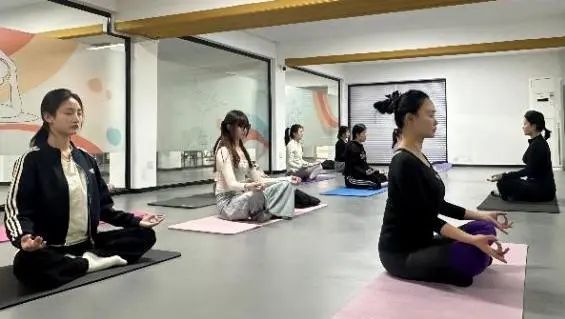 同学们在柔和的音乐中逐步掌握动作要领,凝神聚气、舒展肢体,于动静相宜间感受肌肉的拉伸与心灵的放松。