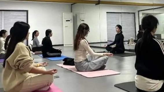 随着轻柔的音乐缓缓响起,瑜伽课堂正式拉开序幕。木木老师以她独特的亲和力与专业素养,迅速拉近了与同学们的距离,帮助大家进入学习的状态,开始“瑜”悦之旅。