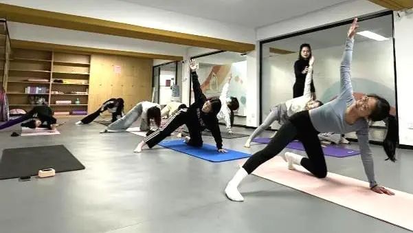 在认真而融洽的氛围中,课程进入尾声,同学们纷纷相互交流心得,分享自己在瑜伽练习中的点滴感悟,现场气氛热烈而和谐。