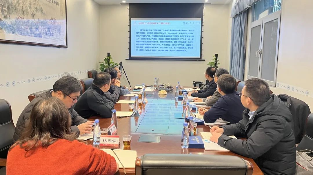 座谈中,厦门大学化学化工学院党委书记宋毅、院长任斌、生命科学学院党委书记马进龙等对我院一行表示热烈欢迎,并分别介绍了学校、学院学科发展建设情况、思政工作开展情况、党建工作特色经验以及近期取得的标志性成果。曾忠毅书记和郑寿添院长对厦门大学的热情接待表示衷心感谢,表示希望以本次调研交流为契机,在科研项目和人才培养方面持续深化交流,探索合作模式,共同推动学科高质量发展。随后,双方就学院党建工作、青年教师队伍建设、专业人才培养、毕业生就业服务、“一站式”学生社区综合管理模式等问题展开了深入探讨。