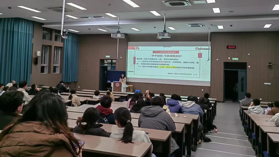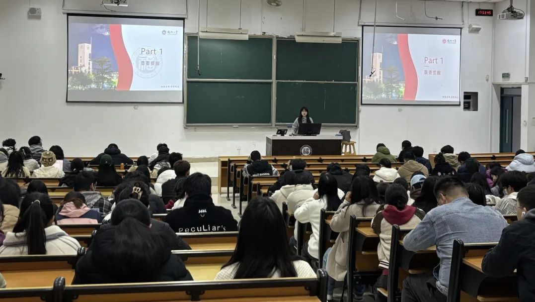 辅导员陈日懿老师、何秀琴老师首先解析当前考研形势,鼓励同学结合初试成绩、目标院校信息和自身发展规划等综合研判,提高升学成功率。随后,他们围绕就业政策、就业途径等方面展开介绍,提醒同学们应认清当前就业形势,主动出击、协同发力,同时要以积极主动的态度应对毕业季的多重任务,科学规划学业与职业发展,圆满度过大学最后一程。