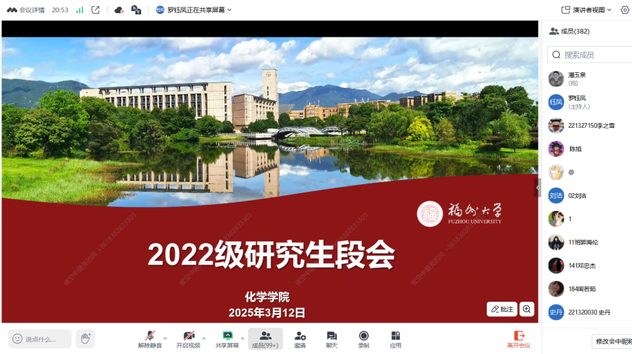 辅导员吴露莎老师聚焦学生学业发展与成长护航,针对纪律规范、奖助政策等常见问题进行了详细解答。她提醒同学们,须严守学术诚信与校规校纪,筑牢安全防线,积极主动和导师沟通,充分利用学校和学院提供的平台与资源,做好学业规划和职业发展规划。新学期伊始,希望同学们调整状态再出发,以饱满的热情投入到科研和学习中。