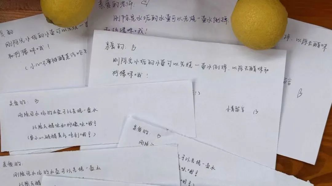 活动尾声,队员们细心擦干居民的水壶,并附上温馨提示便签:“刚除垢的水壶建议先烧一壶水倒掉,避免醋味残留。”这小小的细节,让专业服务充满了家人般的体贴。居民们紧握队员的手,纷纷发出“常来社区”的邀请,成为对志愿服务最温暖的肯定。一张张洋溢着笑容的合影,定格了青年学子服务社区的生动瞬间。