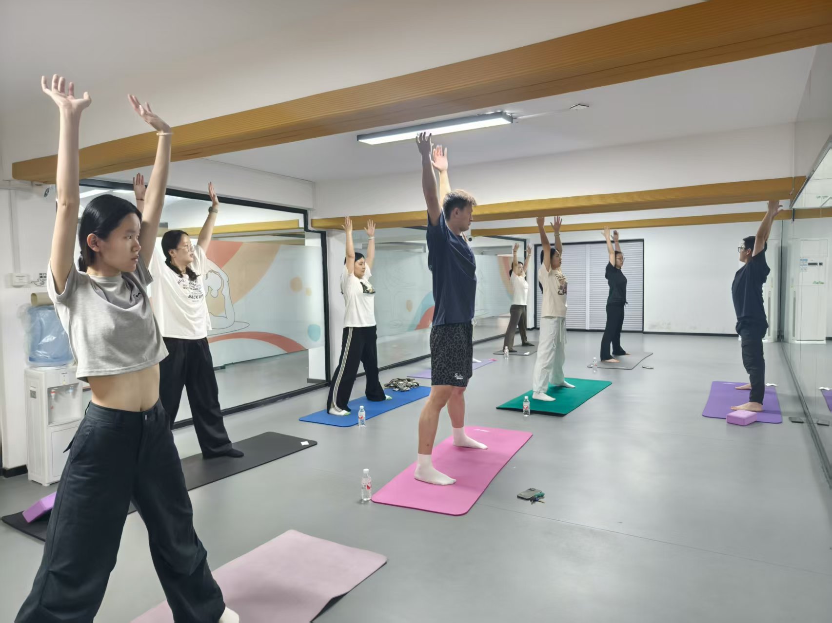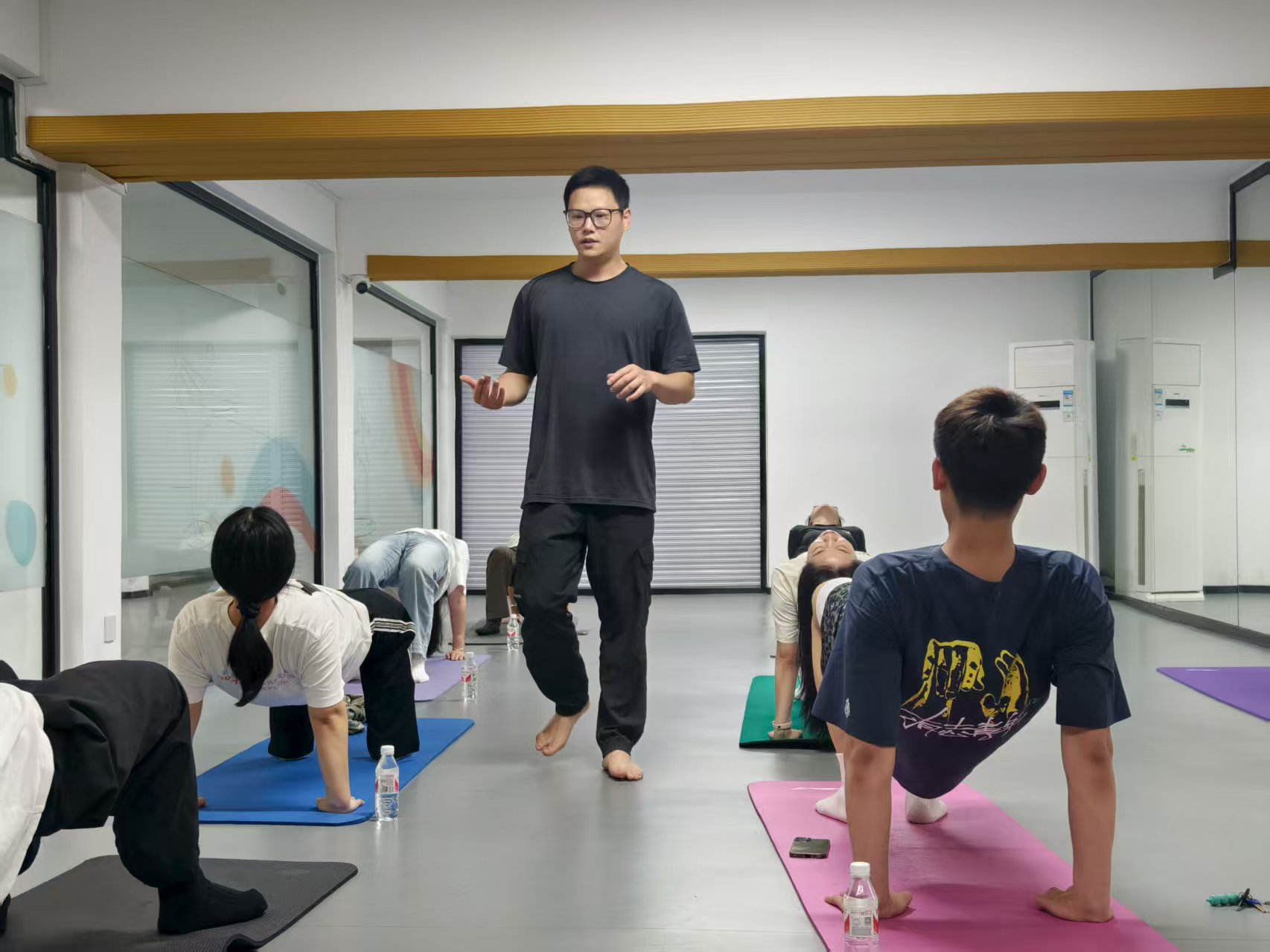 伴随着舒缓悠扬的音乐流淌,瑜伽课堂正式开启。陈国斌老师以亲切的笑容和专业的讲解,带领同学们快速进入到宁静专注的瑜伽世界,开启新一轮的“瑜”悦探索。