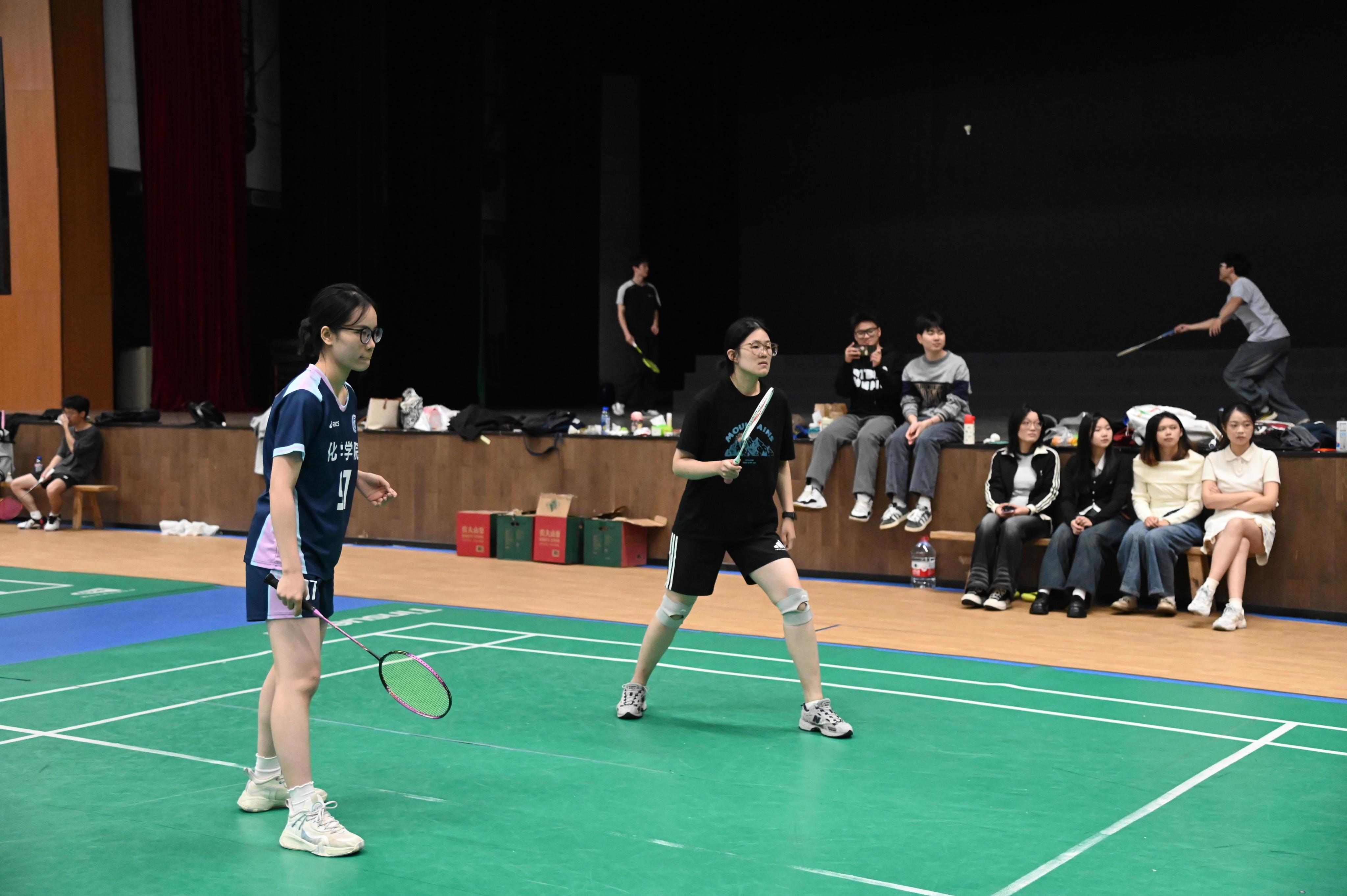 “一拍即合,羽‘化’成蝶”羽毛球赛于宏晖体育馆圆满举行。赛事涵盖男单、女单、男双、女双及混双五个项目,吸引了六十余名学子同场竞技。辅导员董劭敏、研究生会执行主席薛万清及主席团成员程瑜出席本次活动。