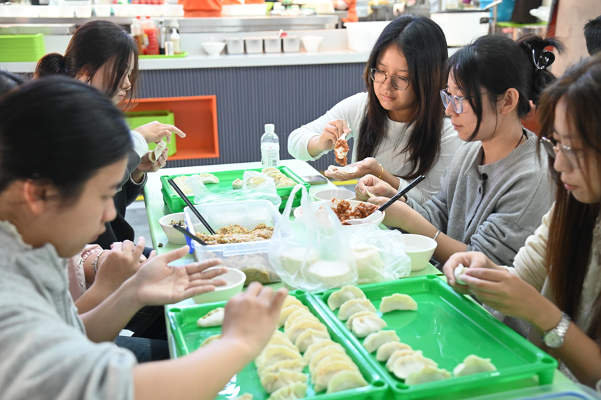 旗山校区玫瑰园餐厅举办了一场别开生面的“迎冬至,情暖研途”包饺子活动,让同学们在亲手劳作中感受节日的温度,在合作中加深彼此的友谊。