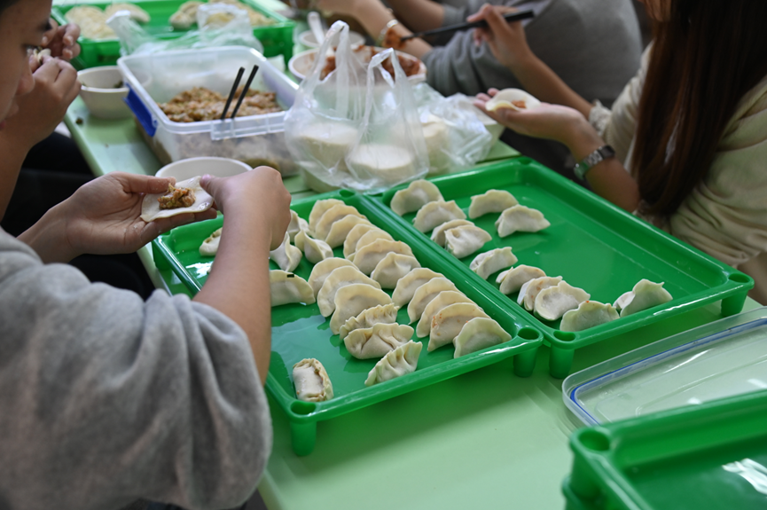 活动伊始,在食堂阿姨的耐心示范下,同学们仔细观察学习,了解包饺子的每一个步骤和技巧。随后,大家纷纷动手实践,在欢声笑语中开启了包饺子的欢乐时光。
