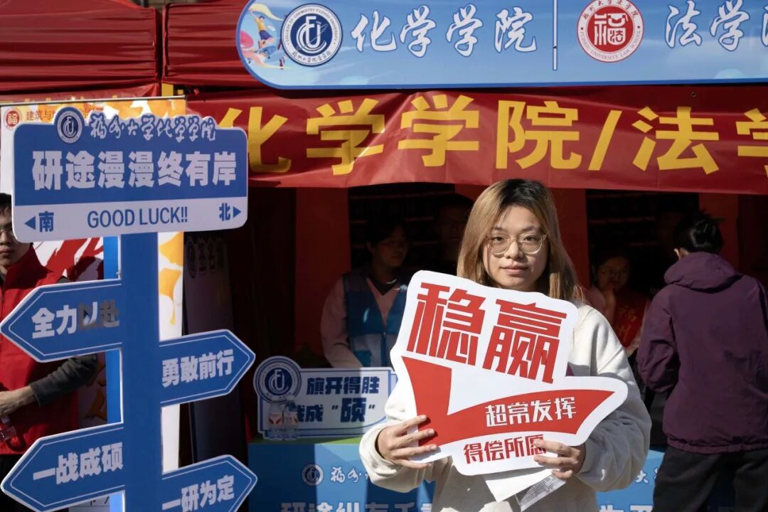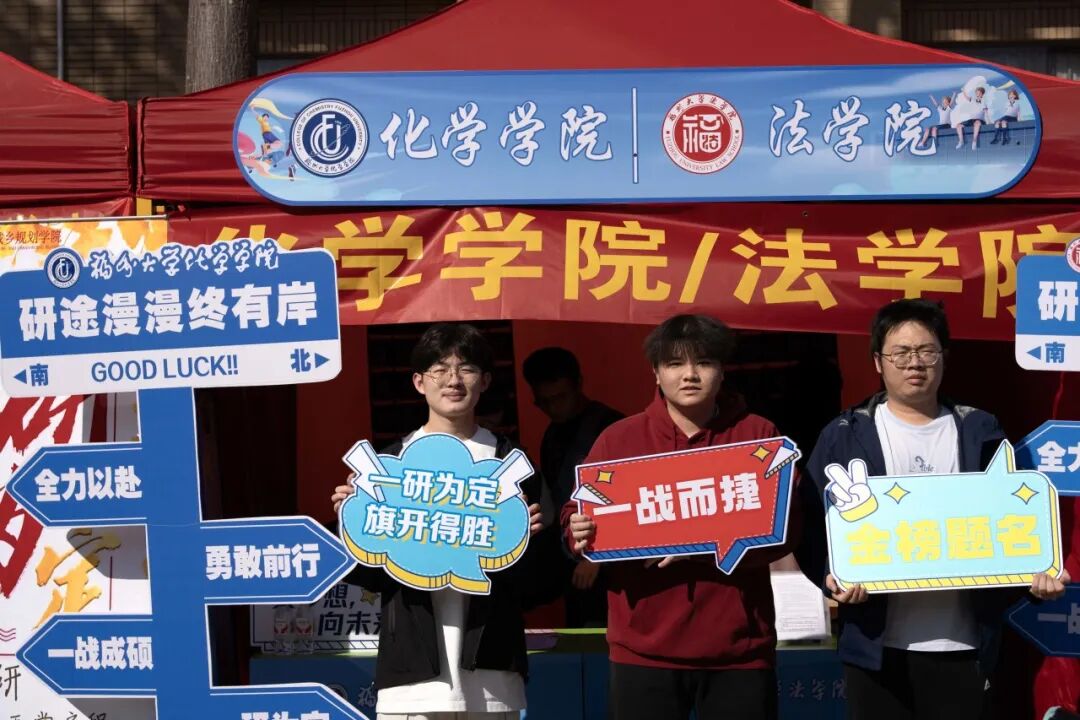 化院大本营的签名墙上,学弟学妹们早已写下他们的真挚祝愿——“愿你笔锋所至皆坦途” “一战成硕” “一研为定”,稚嫩的笔迹里满是敬佩与期盼,成为动人的场外风景。
