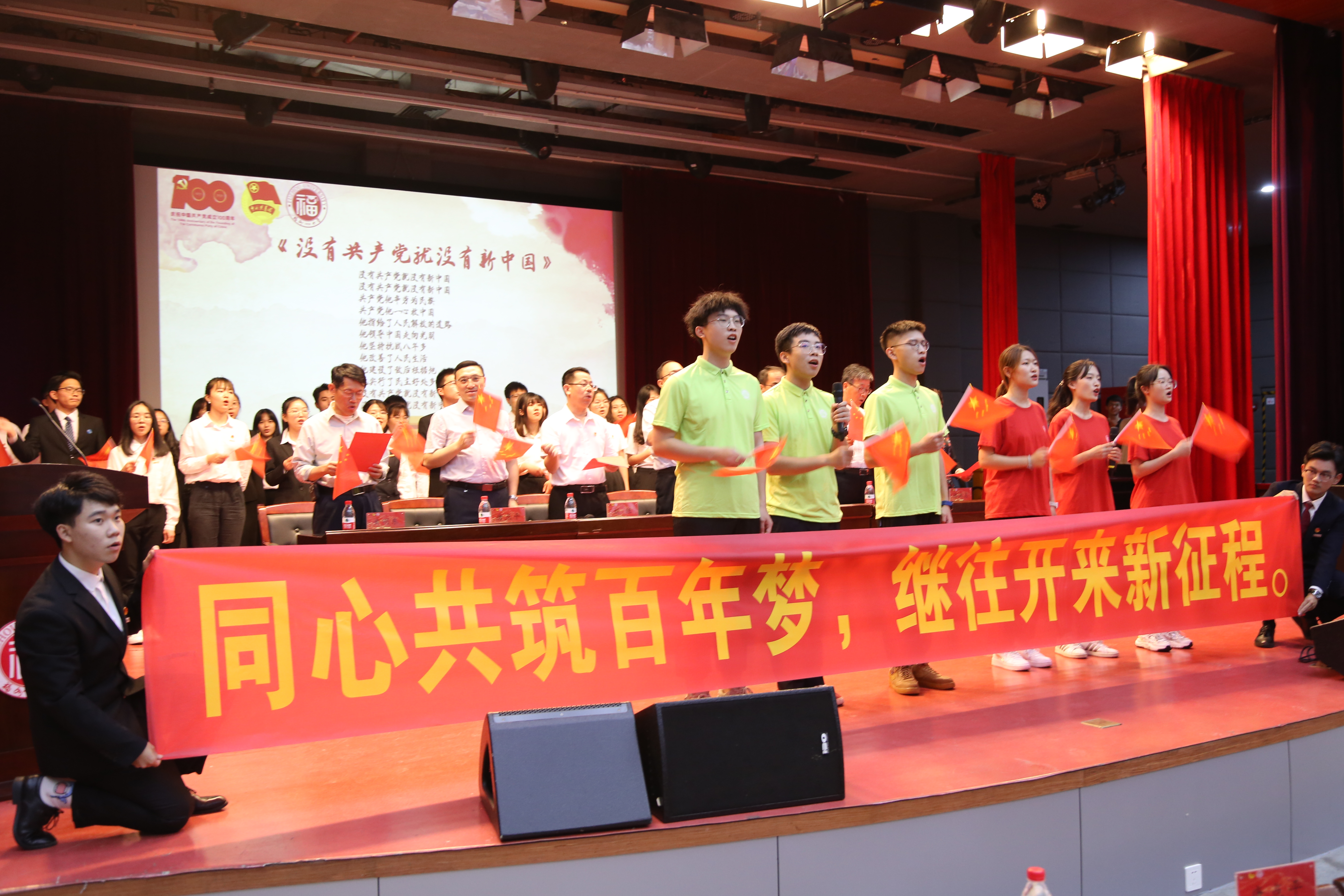 “没有共产党就没有新中国,共产党辛劳为民族,共产党他一心救中国,他指给了人民解放的道路,他领导中国走向光明……”表彰会的最后,几位同学身着红色衣衫,登台献唱,一首《没有共产党就没有新中国》唱出了亿万中华儿女的心声,也激荡着几代人的心扉。同学们在慷慨激昂的旋律中回顾中国共产党的光辉事迹,感受中国共产党波澜壮阔的百年征程,情不自禁挥舞手臂,一同高声合唱,嘹亮的歌声在会场久久回荡……本次活动以强国一代新青年的精神面貌迎接中国共产党100周年华诞,激发了我们强烈的爱国主义情怀,为中国共产党建党100周年献礼。同时进一步坚定了我们的理想信念,以青春之力诠释把小我融入大我的责任和担当。
