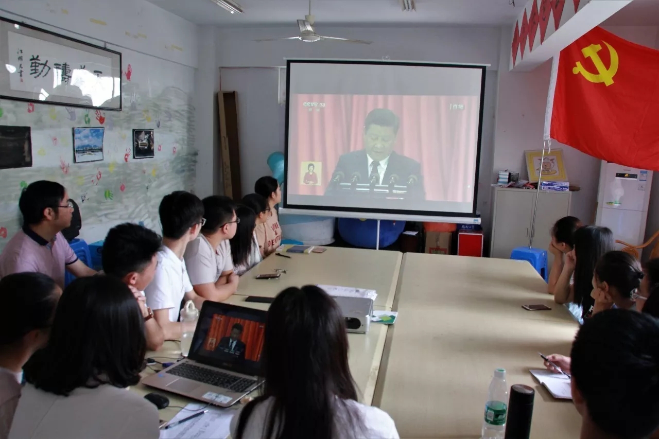 主要学生干部齐聚学生宿舍26号楼2楼活动室,一同观看十九大开幕式盛况。会议开始前,全场肃穆,荧屏内外都充满了紧张期待的气氛。