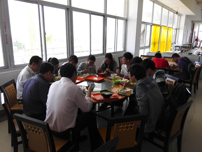 党委书记石炳文、党委副书记刘旺一行前往学校紫金园二楼餐厅与学院8名学生共进午餐,并就学生生活、学习当中遇到的困难、问题以及对学院发展的愿景和建议等与学生畅谈。学院团委书记蓝荣聪、13级本科生辅导员单洪勰陪同。