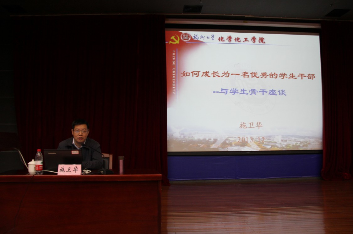 12月2日下午,化学化工学院、石油化工学院学生干部培训讲座在图书馆明德厅举行,学院党委施卫华副书记为全院学生干部作了题为《如何成长为一名优秀的学生干部》的主题讲座。讲座由院团委书记陆莉莉主持,全院200多名学生干部参加了培训报告会。