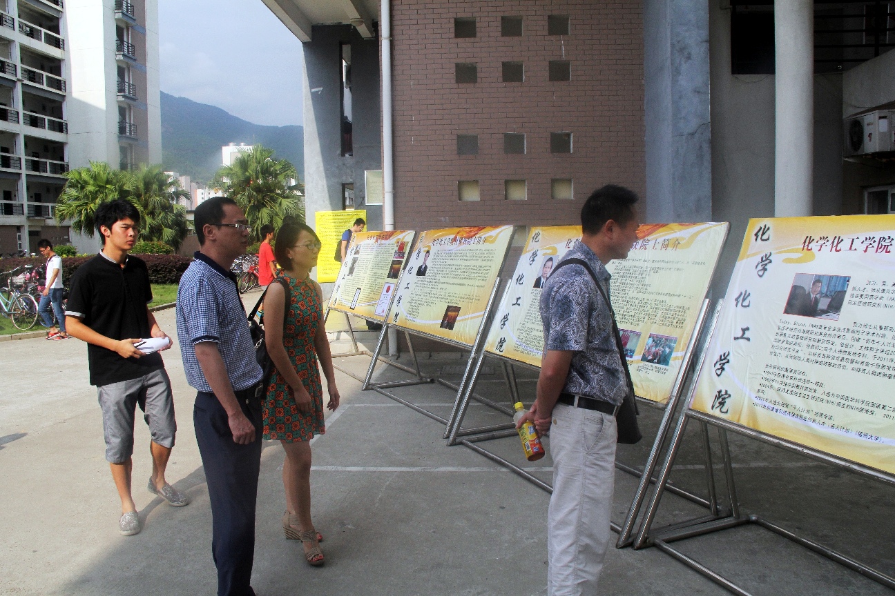 学校领导也对我院迎新工作予以高度关注。上午十时许,付贤智校长在相关人员的陪同下来到我院迎新站点视察工作,付校长充分肯定了我院的工作表现,并嘱咐政工干部要尽力做好各项服务工作,从细节着手,帮助新生们了解学科专业,早日适应校园生活。