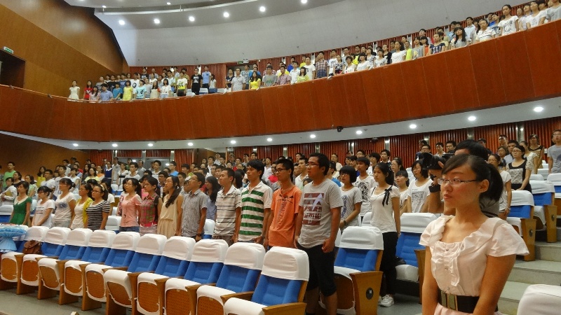 化学化工学院2013级本科及研究生开学典礼在图书馆博学厅隆重举行。化学化工学院院长王绪绪教授、院党委石炳文书记、施卫华副书记、常务副院长陈建中教授、副院长林树坤教授、副院长黄剑东研究员、院长助理付凤富教授、化学系主任陈义平教授出席了开学典礼。大会由院党委施卫华副书记主持。开学典礼在庄严的国歌声中拉开帷幕。