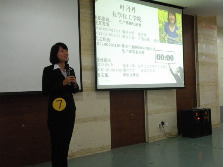 首先,十位选手分别自我介绍,展现自我。面试官再根据他们的介绍情况进行深入提问,各位选手们都能从容应对、自信作答。我院选手叶丹丹同学面对考官的层层“刁难”与“质问”,应对自如,游刃有余,给在场评委及同学们留下深刻印象。随后,进入无领导小组讨论环节,评委们根据选手的表现情况分别进行针对性提问。叶丹丹同学认真分析,结合实际,以面试岗位的特点为着眼点,进行回答,条理清晰,有理有据。经过一番紧张又激烈的角逐,我院10级本科生叶丹丹同学以总分87.61的总分数荣获此次竞赛三等奖的好成绩。